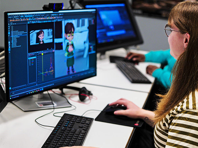 At our STEM-designated School of Animation and Visual Effects, you’ll start with core training in art and production pipelines taught by working professionals. Then, you’ll specialize in areas like CG, traditional, 3D, or stop-motion animation; modeling; rigging; dynamics; compositing; lighting; or look development.